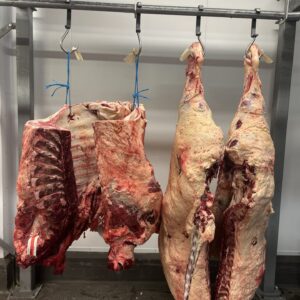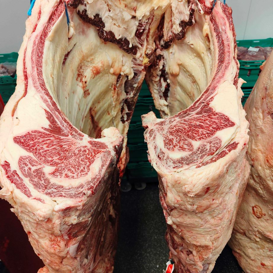 Not every Wagyu carcass is suitable for premium restaurant supply. Each one is evaluated to ensure it meets the required standards for marbling and meat quality. We receive whole carcasses directly from Wyndford Wagyu in Shropshire, allowing our butchers to break down the primals into whole muscles.