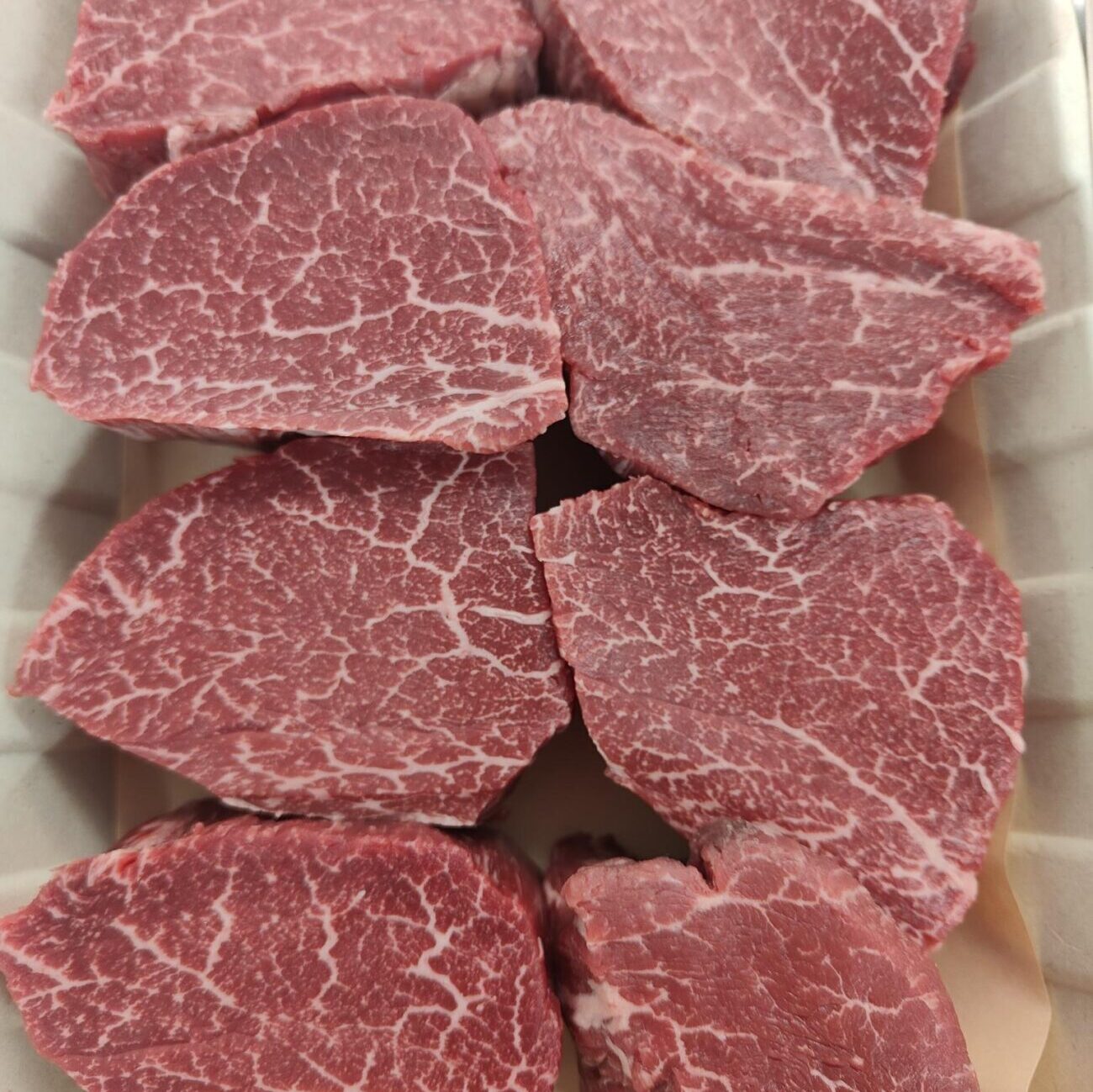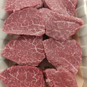 Many Wagyu products available are actually crossbred cattle, typically Wagyu crossed with Dairy Cattle breeds such as Holstein. These animals do not deliver the same level of marbling or consistency found in true full-blood Wagyu.